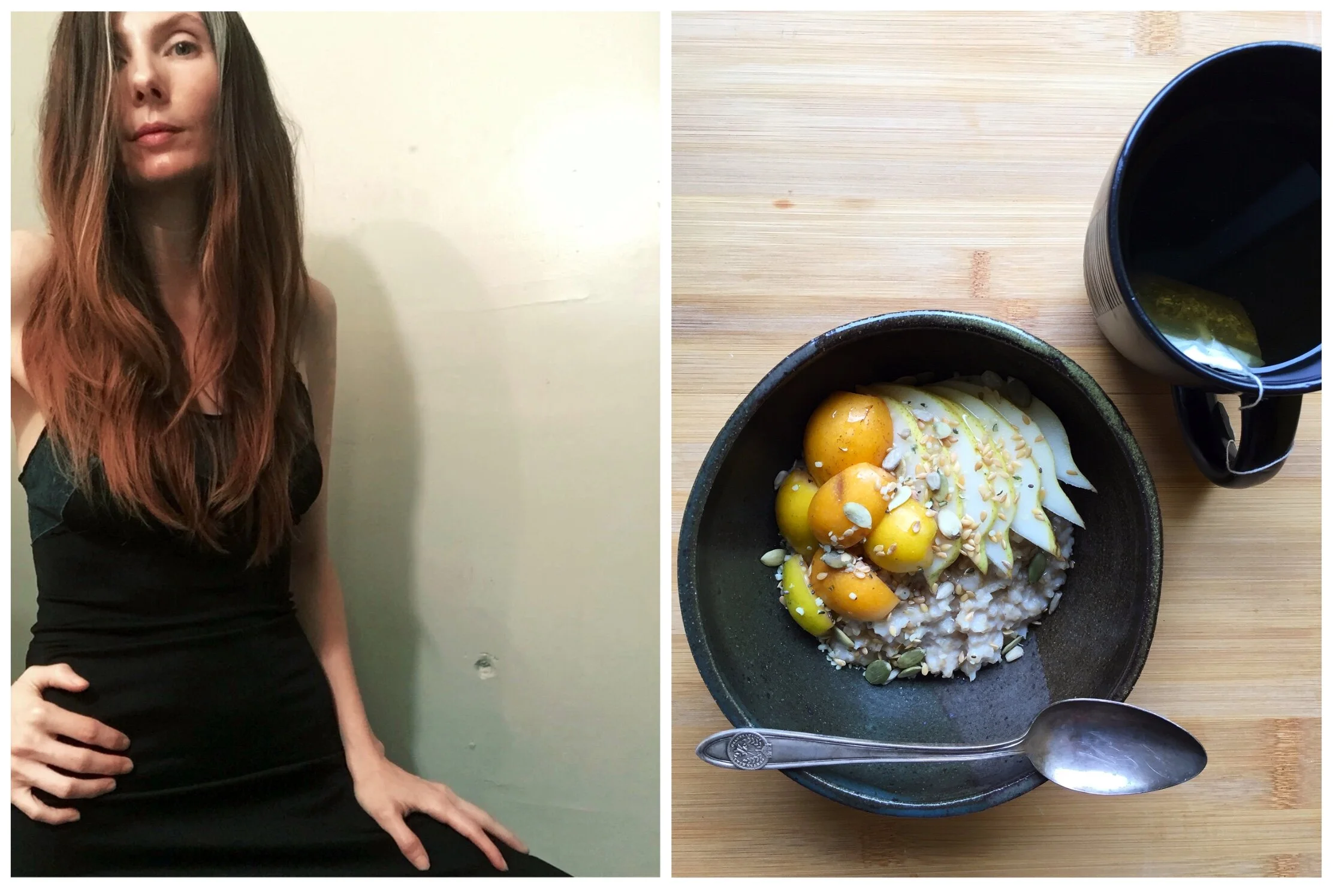 Day 97: Oatmeal, loquats and pears, oh my! Peppermint green tea on the side.