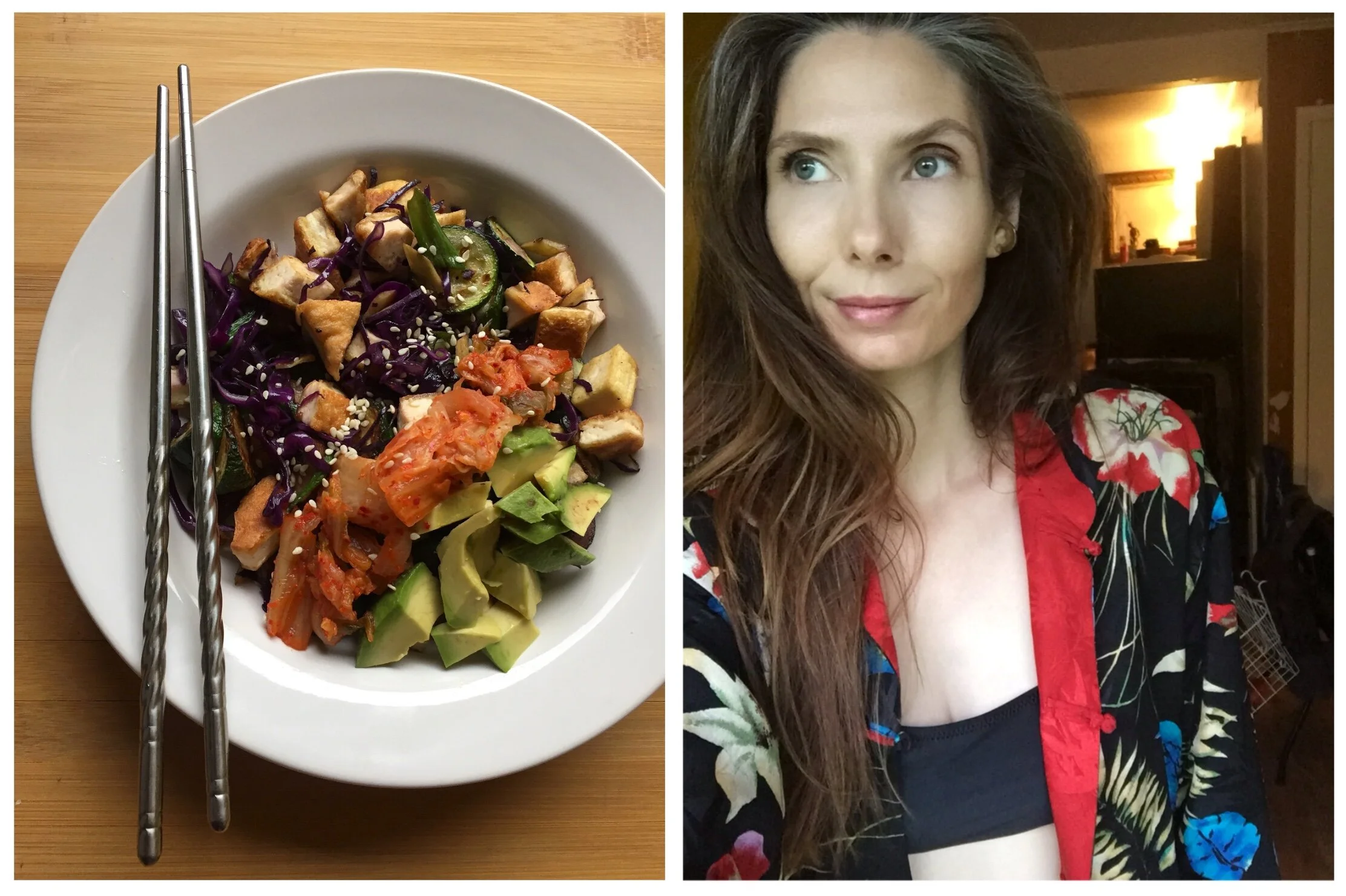 Day 122: I had a banana on my ride this morning then cooked up this tofu stir fry when I got home. Tofu, purple cabbage, zucchini, scallions, mushrooms, avocado, kimchi sesame and coconut oil.