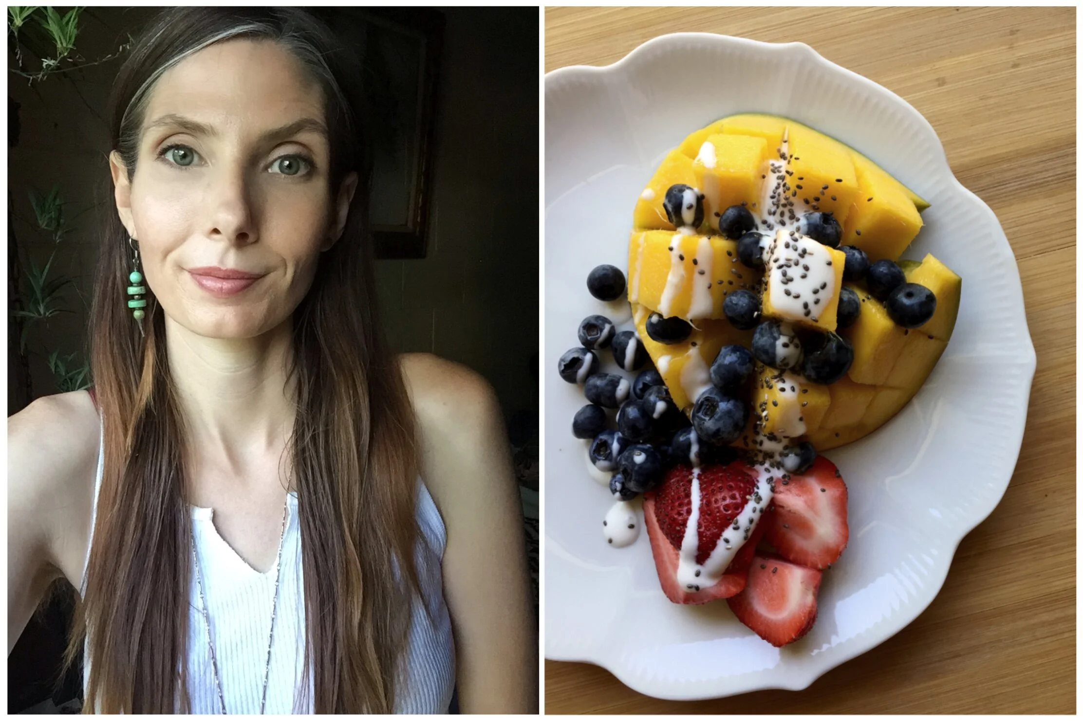 Day 149: Keeping it simple.. 1/2 a mango, strawberries, blueberries and a little Greek yogurt with chia seeds