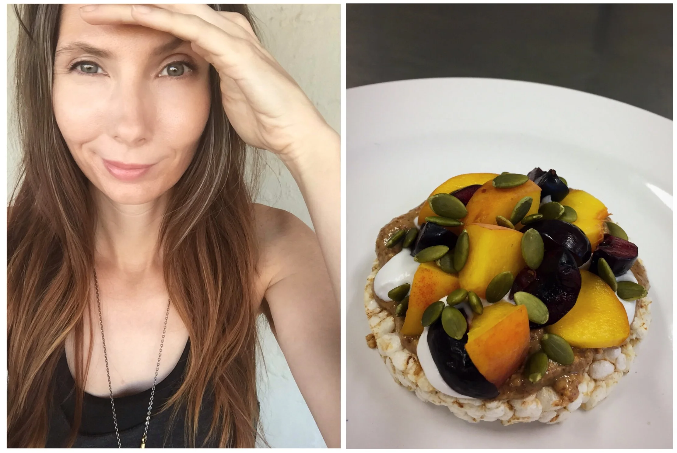 Day 198: Rice cake with almond butter, coconut cream, peaches, cherries and pumpkin seeds. It made me pretty flipping happy. I didn’t want an egg after cooking so many. Go figure.
