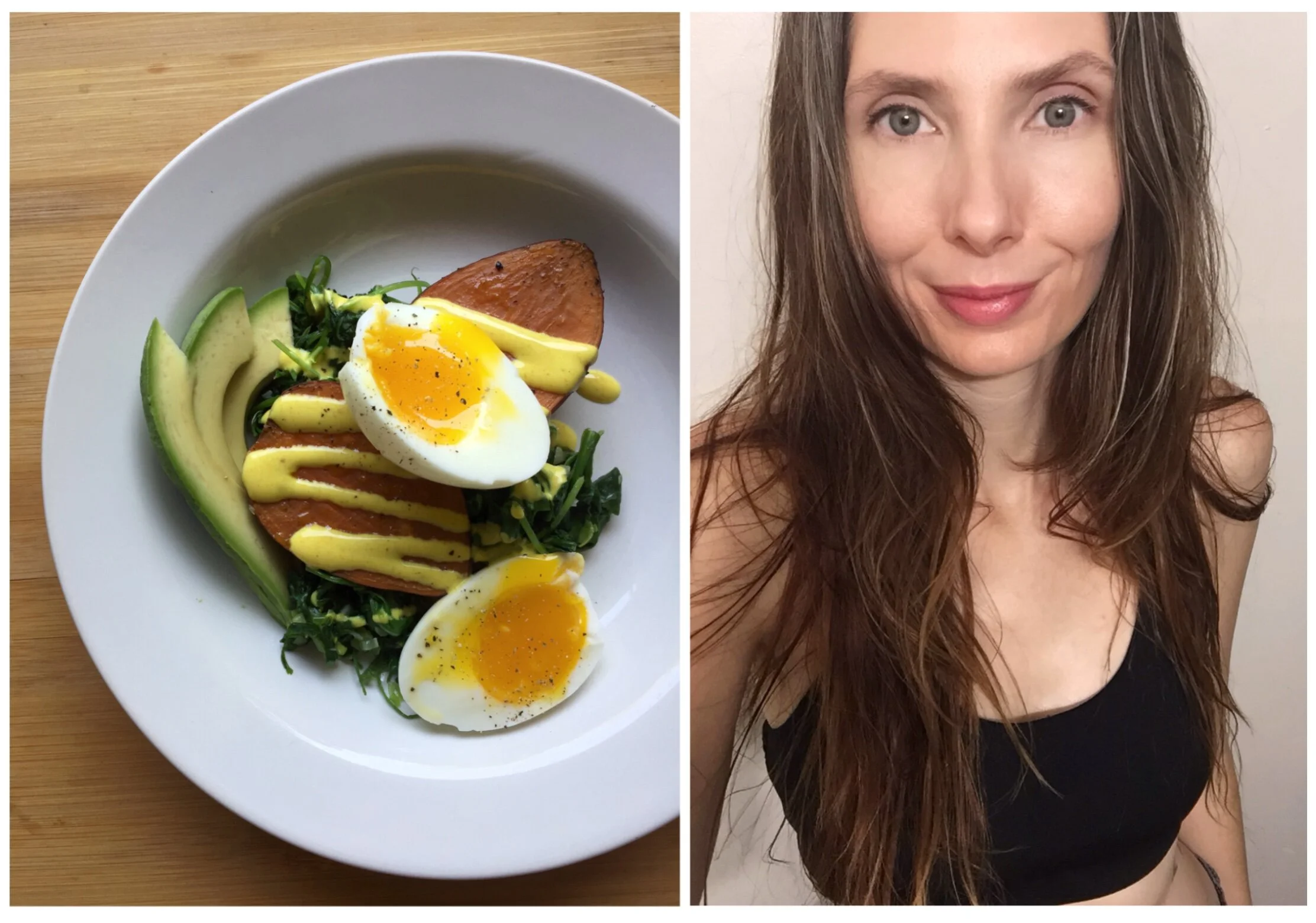 Day 124: Roasted sweet potato, sautéed kale, spinach and scallions, avocado, 6 minute egg + a Turmeric and ginger yogurt sauce that went great with the sweetness of the potatoes and the bitterness of the greens.